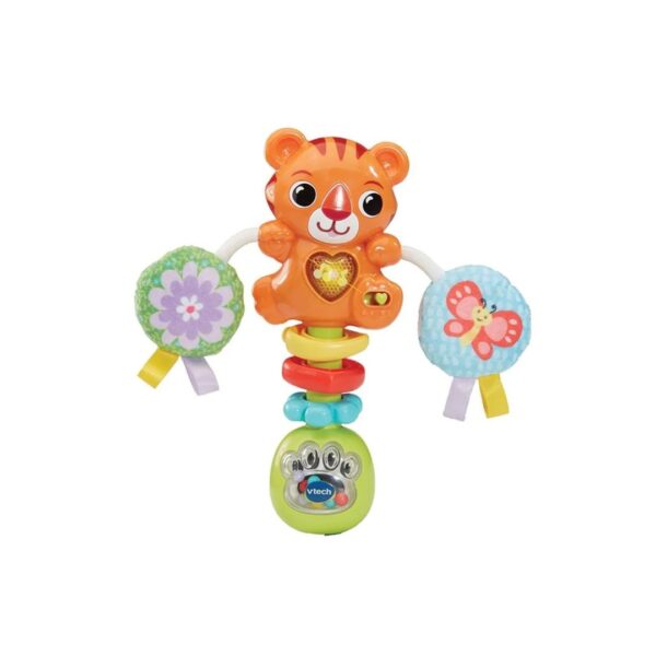 VTech Rattle & Roar Tiger, an interactive sensory toy for babies, designed to stimulate play with sounds and textures.