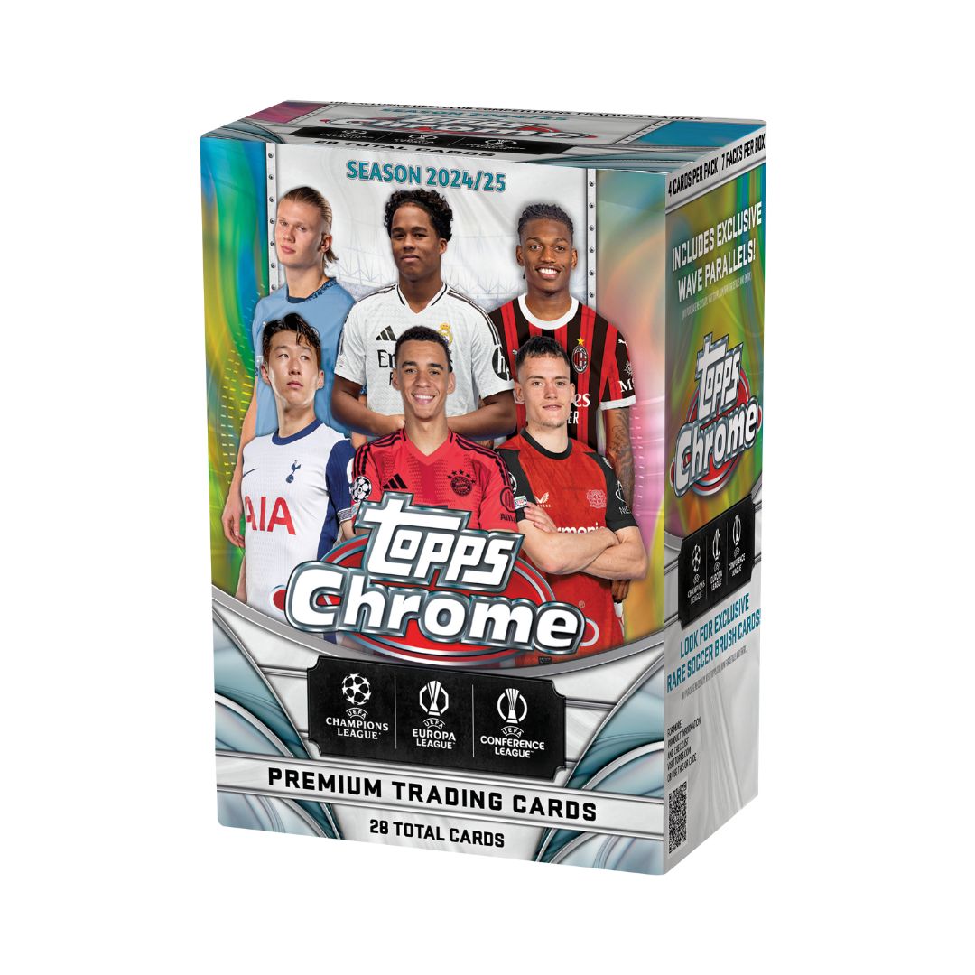- The 2024-25 Topps Chrome UEFA Club Competitions Value Box is a must-have for soccer collectors, featuring 7 packs per box with 4 cards in each. Discover today’s brightest stars, rising talents, and iconic legends like Messi, Zidane, and Ronaldinho. Look out for exclusive rare Soccer Brush cards and chase ultra-rare inserts such as Helix and Munich at Night. With exciting new subsets, on-card autographs—including the first from Sir Alex Ferguson—and returning favorites like Wonderkids and Golazo, this collection delivers top-tier excitement. Login required to purchase.