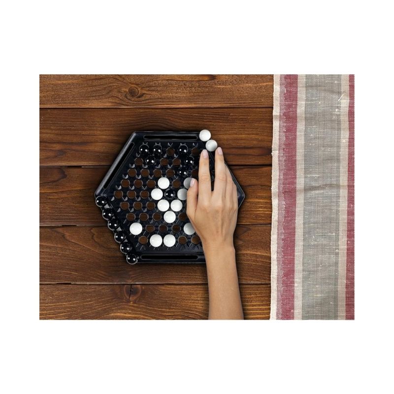 • Experience elegant strategy and tactile gameplay with this beautifully designed marble strategy board game. Featuring a functional board with space for two teams of large marbles, players take turns pushing marbles across the board with the goal of forcing six of their opponent’s marbles off the edge to win. The game’s core mechanic is based on weight and positioning—a line of marbles gains strength from the number of marbles it contains, meaning only a heavier column can push a lighter one. With six possible movement directions, players must constantly adapt their strategy, as perfect defense is nearly impossible. Simple to learn yet deeply strategic, this game rewards foresight, spatial reasoning, and tactical planning. For even more fun, the game can be expanded to support up to six players with additional marble sets, making it ideal for both intense head-to-head matches and group play.