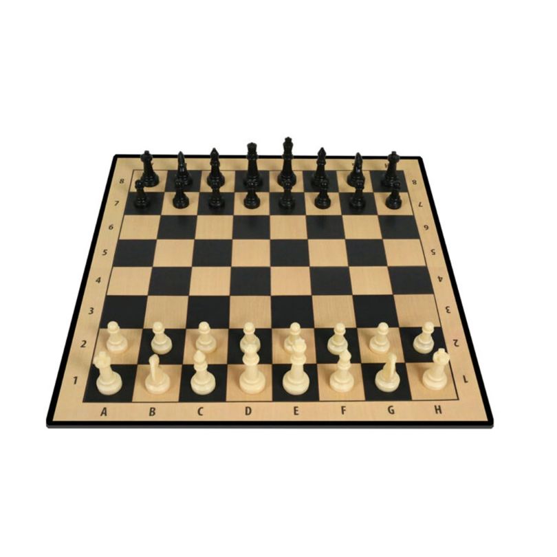 A basic chess set featuring classic wooden pieces on a checkered board, ideal for beginners and casual players