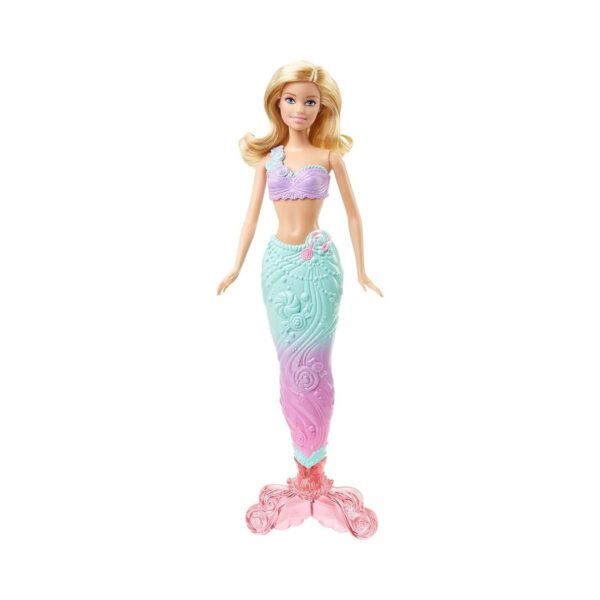 • The Barbie doll in this set is a versatile character, transforming into three enchanting personas – a Royal, a Mermaid, and a Fairy. Inspired by a candy kingdom theme, Barbie looks positively sweet with vibrant and colorful designs.