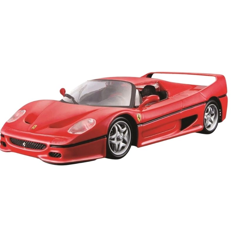 • Bburago 1/24 scale model of a Ferrari F50, displayed without a stand, showcasing its detailed design and vibrant color