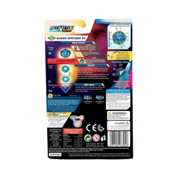 - Unleash unstoppable power with the Bey Battle Burst Naked Spryzen S5! Designed for elite-level performance, this Beyblade offers a balance of defense and offensive capabilities that make it a formidable contender in any battle. Featuring the innovative “Naked” layer, Spryzen S5 delivers exceptional stamina and burst resistance, keeping it in the fight longer. Whether you’re competing against friends or sharpening your skills, Naked Spryzen S5 is built for intense, strategic battles that will leave your opponents on edge.