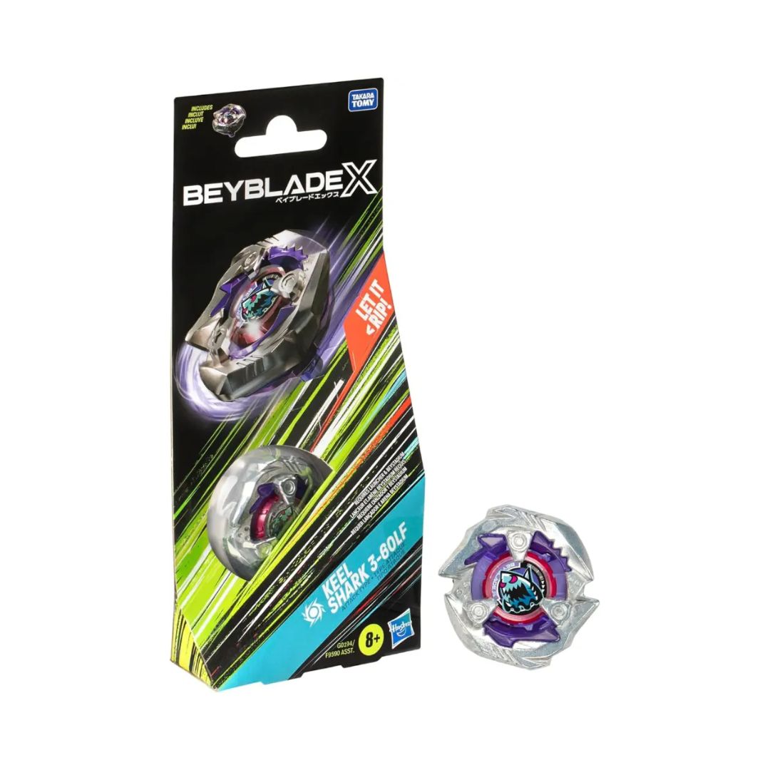 - Experience the thrill of next-level battles with the Takara Tomy Beyblade X Keel Shark 3-60LF Booster Pack, a fierce right-spinning Attack Type top from the high-speed Beyblade X series. Built for power and precision, the Keel Shark delivers explosive speed and impact using the advanced X-Celerator Gear System, allowing it to ride the stadium rail and trigger an Xtreme Dash for intense collisions. This Booster Pack includes three interchangeable components—Blade, Ratchet, and Bit that can be customized with other Beyblade X parts (sold separately) for unique battle strategies. Constructed with authentic Takara Tomy metal parts, it offers exceptional durability and attack power. Perfect for Bladers aged 8 and up, the Keel Shark 3-60LF is engineered for high-perf.