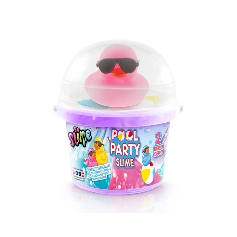 - Dive into splashy fun with the Pool Party Ducky Bucket! This playful set features sparkling, pool-inspired slime that looks just like refreshing water, creating an exciting sensory experience for kids. Open the bucket to discover hidden surprises inside, adding an extra layer of fun and creativity to every play session. With varying colors and styles, each bucket delivers a unique surprise, making it perfect for collecting, gifting, or imaginative play. Whether at home or during playdates, this set brings a fun “pool party” vibe without the mess of real water.