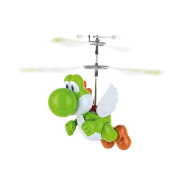 -  Ready to Fly Yoshi is a fun, lightweight, and easy-to-fly remote control toy that lets you soar through the air with all the excitement of Yoshi from the Mario Kart universe! This flying toy is designed for both beginners and experienced flyers, providing hours of entertainment indoors. It comes with everything you need to get started: a Yoshi figure, a 2.4 GHz remote control, a USB charging cord, and a display base for when Yoshi’s not flying. Whether you’re practicing your flying skills or just having fun, Yoshi is ready to zoom through your space!