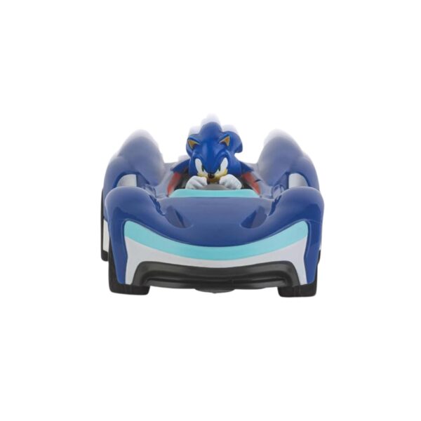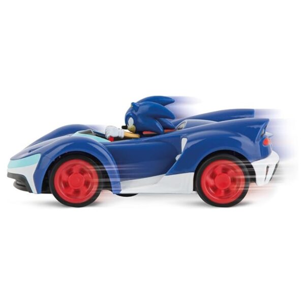- Experience the thrill of Team Sonic Racing with the Carrera Mini RC Sonic (1:43 Scale)! This officially licensed remote-controlled vehicle brings the speed and excitement of Sonic the Hedgehog into the real world. With precise steering, full driving functionality, and 2.4 GHz technology, you can enjoy interference-free racing action, even with multiple players. The compact design makes it perfect for indoor fun, while its detailed styling stays true to the iconic Sonic character. Whether you’re racing with friends or adding to your Sonic collection, this RC car is a must-have for fans!