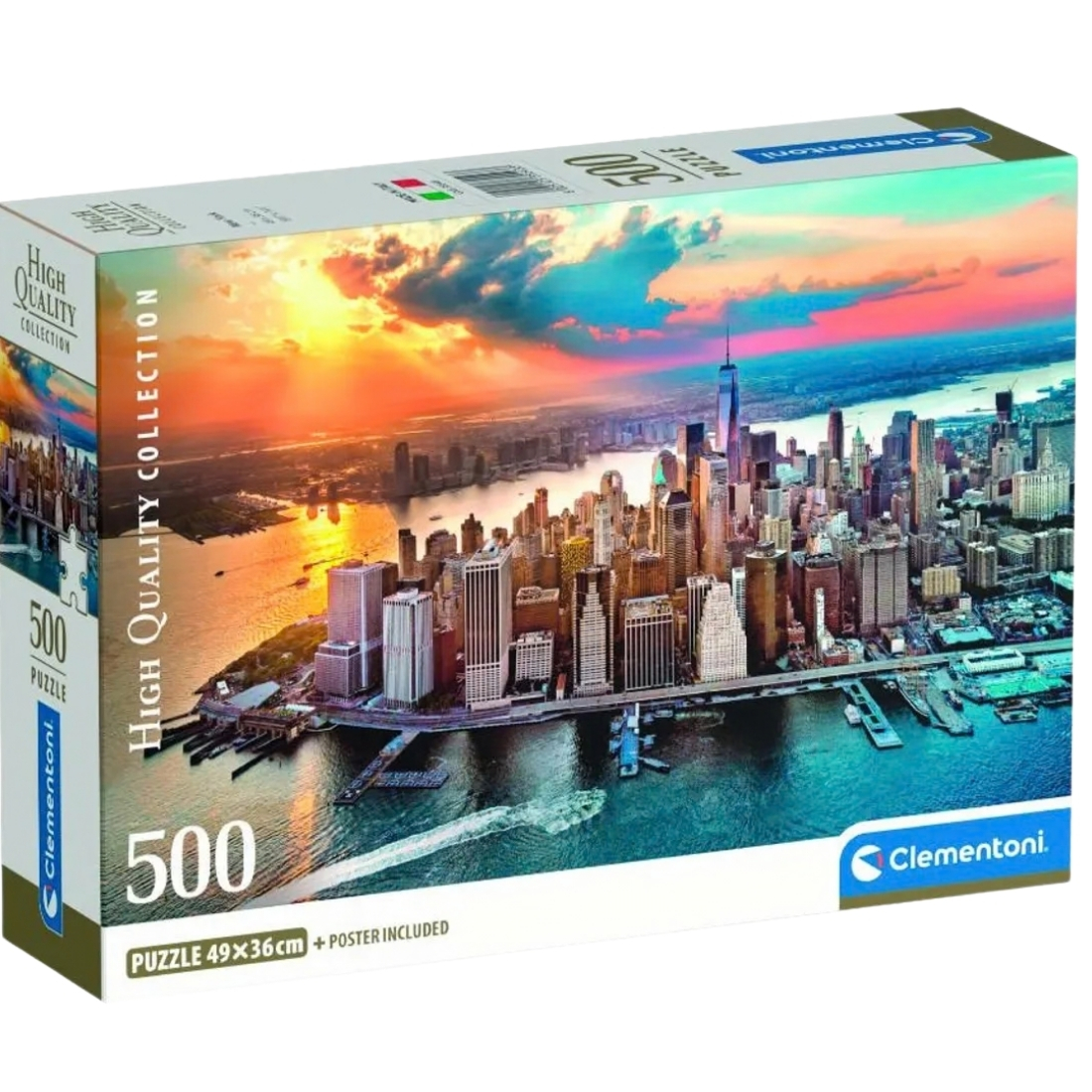 - Discover the iconic skyline of New York City with the Clementoni HQC New York Puzzle and Poster – 500 Pieces. This high-quality jigsaw puzzle features a breathtaking view of one of the world’s most famous cities, capturing the vibrant energy and stunning architecture of New York. Part of Clementoni’s High Quality Collection (HQC), this puzzle is crafted with premium materials, vibrant printing, and precision-cut pieces that ensure a perfect fit. The set also includes a reference poster to guide you while assembling the puzzle.