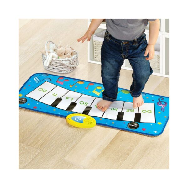 • The Discovery Play Piano Music Mat is a dynamic and interactive toy designed to provide hours of musical enjoyment for youngsters. This engaging mat encourages children to explore their musical creativity by experimenting with playing their own songs or mimicking tunes from the radio or television. Featuring large keys that are perfect for children’s small hands, kids can not only play with their hands but also dance on the keys using their feet. With its built-in library of 8 famous children’s songs, such as “Mary Had a Little Lamb” and “Hot Cross Buns,” children can easily play these classics by pressing the illustrated notes and sing, dance, or play along. The memory recall function allows them to play back musical sequences, enhancing their musical learning experience. Portable and travel-friendly, this mat can be easily folded for storage or carried along for musical fun on the go.