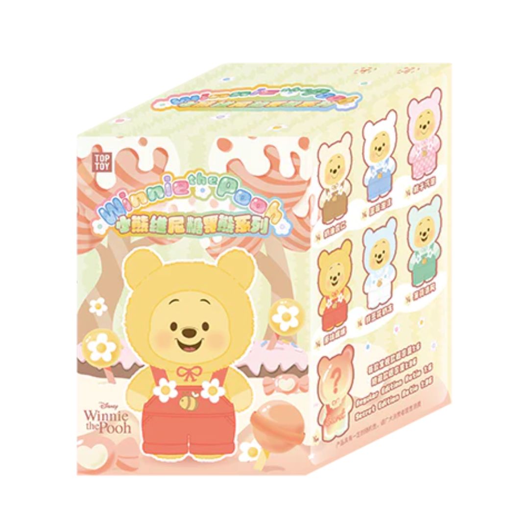 - Step into a world of sweetness and nostalgia with the Disney Winnie the Pooh Candy Bear Series Vinyl Plush Blind Box. Each box contains one surprise character dressed in delightful candy-themed attire. Whether you’re a lifelong Pooh fan or a collector of cute vinyl figures, these soft pastel plushies bring joy and charm to any collection.