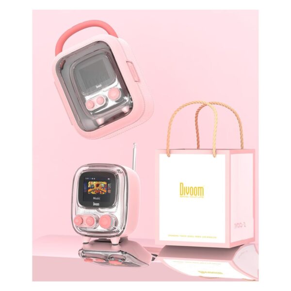 - The Divoom Tivoo Retro Bluetooth Speaker combines vintage aesthetics with modern functionality to deliver an exceptional audio and visual experience. This stylish speaker features a classic retro TV-inspired design with a vibrant pixel display screen, making it a perfect decorative piece for your bedroom, table, or outdoor spaces. Equipped with Bluetooth connectivity and an additional FM radio function, this speaker offers versatile listening options, whether you want to stream your favorite playlists or tune into your local radio stations. Its compact design and charming pink finish make it an eye-catching addition to any room or setting. Perfect for music lovers and retro enthusiasts alike, the Tivoo blends nostalgia and innovation seamlessly.