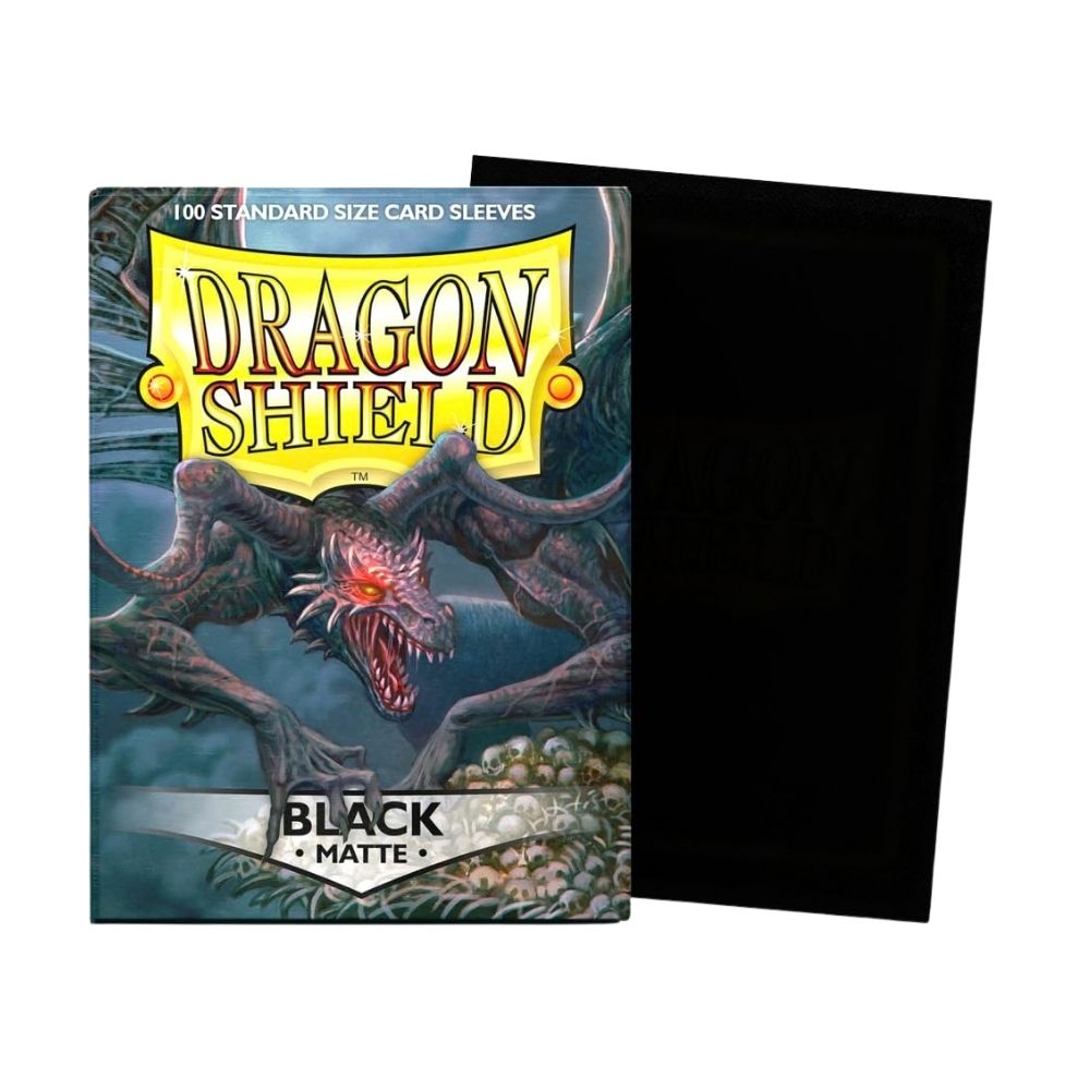 - The Dragon Shield Standard Sleeves Matte Black (100 Sleeves) offer durable protection for standard-size trading cards, helping prevent scratches, dirt, and wear during gameplay or storage. Featuring a sleek matte black finish that reduces glare and provides a smooth shuffle feel, these sleeves are ideal for collectors and players of popular card games like Magic: The Gathering, Pokémon, and Yu-Gi-Oh!