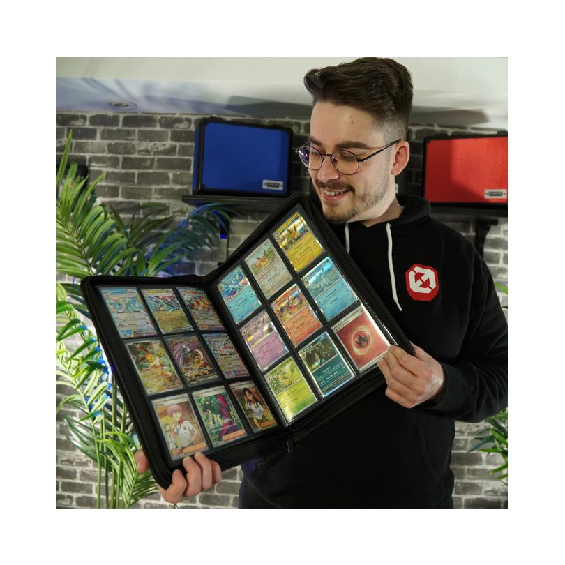 - Keep your trading cards safe, organized, and stylish with the Evoretro Regular Card Binder with Zipper – Red. Designed for collectors who value both function and flair, this binder features a durable PU leather exterior, smooth zipper closure, and sturdy 9-pocket pages that hold standard-size trading cards. Whether for Pokémon, MTG, or sports cards, this binder ensures your collection stays secure and easy to browse anytime.