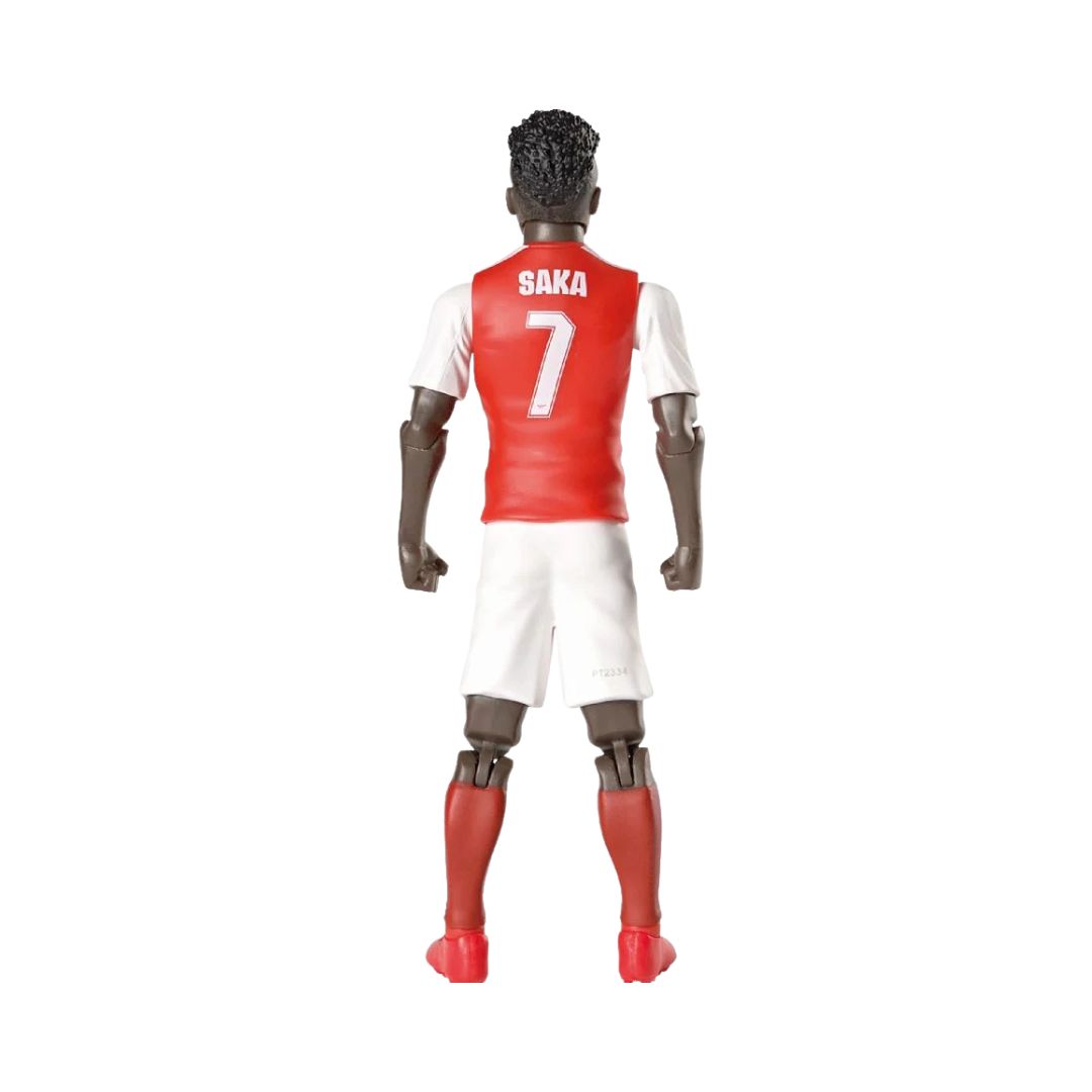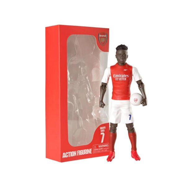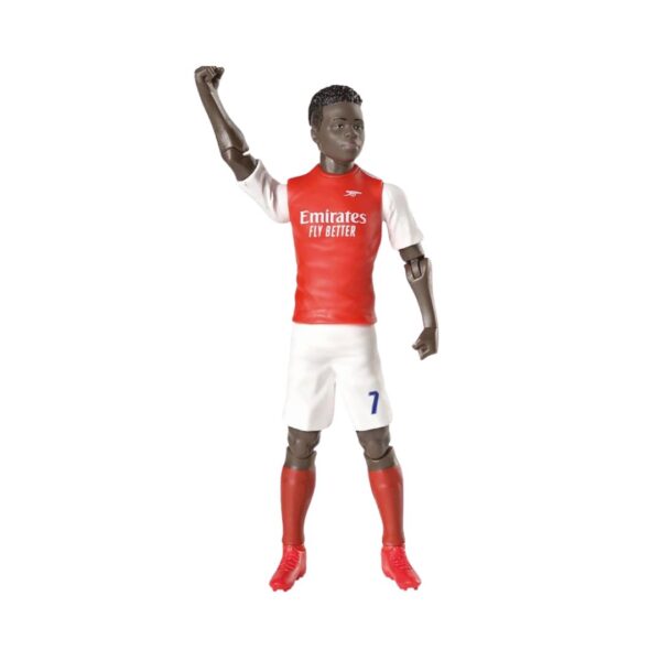 • Arsenal football action figure of player Bukayo Saka in a dynamic pose, wearing the team's red and white kit