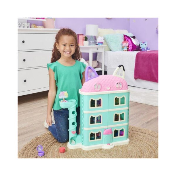 - Step into a world of magic and wonder with the Gabby’s Dollhouse Purrfect Dollhouse. This enchanting dollhouse is packed with exciting features that will delight children and inspire imaginative play. Designed after the whimsical world of Gabby’s Dollhouse, this toy invites children to explore mini-worlds filled with adventure and fun.