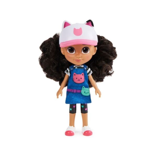 - Bring the magic of Gabby’s Dollhouse to life with the 20cm Gabby’s Dollhouse Doll! This delightful doll is dressed in a new outfit and is ready for endless adventures. Featuring realistic details straight from the hit Netflix show, such as her denim dress, cat ears, and ball cap, this Gabby Girl doll captures the true essence of the character. Her super soft and curly hair is fun to brush, tie, and style, adding an extra layer of interactive play. The doll also comes with removable cat ears and a baseball cap, allowing for imaginative play and countless adventures. With themed rooms, dollhouse furniture, and toy figures, kids can create their own dollhouse world, fostering creativity and imaginative play.