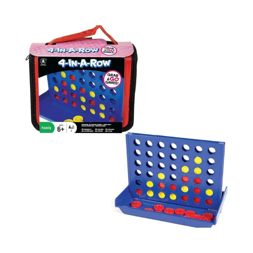 - Take the fun anywhere with the Ambassador Grab & Go Games – Travel 4-in-A-Row Game (ST057)! Designed for convenience and portability, this classic strategy game comes in a strong, durable nylon zipper bag with a handy carry handle perfect for on-the-go entertainment. Ideal for travel, family trips, or quick game nights, it’s compact, easy to store, and built to last. Once the fun is over, simply pack it back into the bag for neat and hassle-free storage.