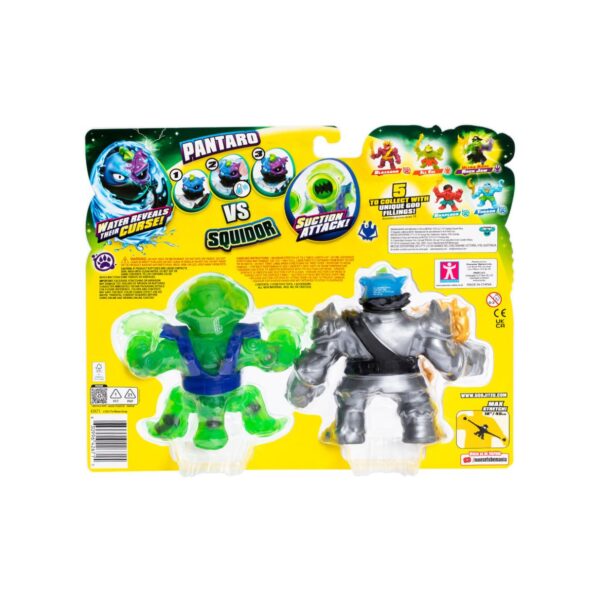 - Dive into the ultimate battle beneath the waves with the Heroes of Goo Jit Zu Cursed Goo Sea Versus Pack! This exciting pack features two exclusive characters: Pantaro and Squidor. Engage in epic battles as the forces of good and evil clash in the depths of the Cursed Goo Sea. Pantaro, with his powerful Blowfish Mace, faces off against Squidor and his fearsome suction attack. Both characters are designed with unique features and incredible stretchability, making them perfect for action-packed play.