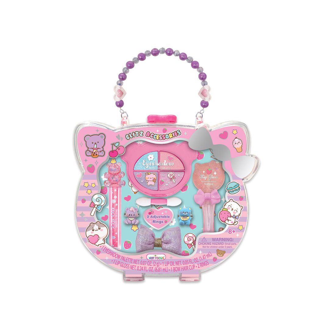 - The Glitz Beauty Critters Set combines sparkle, creativity, and cuteness in one playful package! This set includes a vibrant eyeshadow palette, two glossy lip colors, and two adjustable rings with adorable critter designs, perfect for kids who love to mix fun and fashion. Ideal for imaginative play, dress-up, or introducing little ones to safe, colorful makeup, it makes beauty time exciting and stylish.