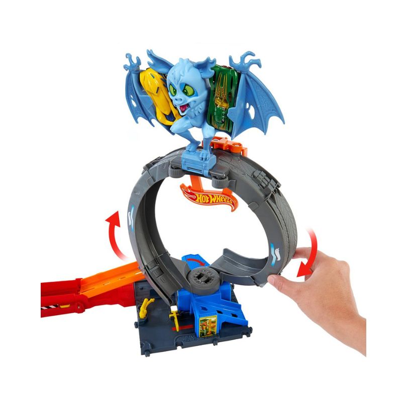 - Get ready for action-packed racing with the Hot Wheels City Tire Shop Bat Attack Playset! Inspired by thrilling moments from the Netflix series “Let’s Race,” kids can speed, launch, and stunt their way to defeating the giant bat that has taken over the tire shop. With three exciting gameplay modes, young racers can blast through the loop to knock down the creature, line up a straight shot for a dramatic jump attack, or race beneath the loop for fast-paced track fun. The rotating loop and adjustable launcher let kids set up dynamic challenges and create endless storytelling adventures.