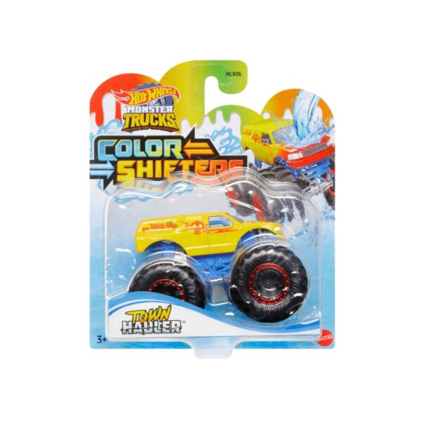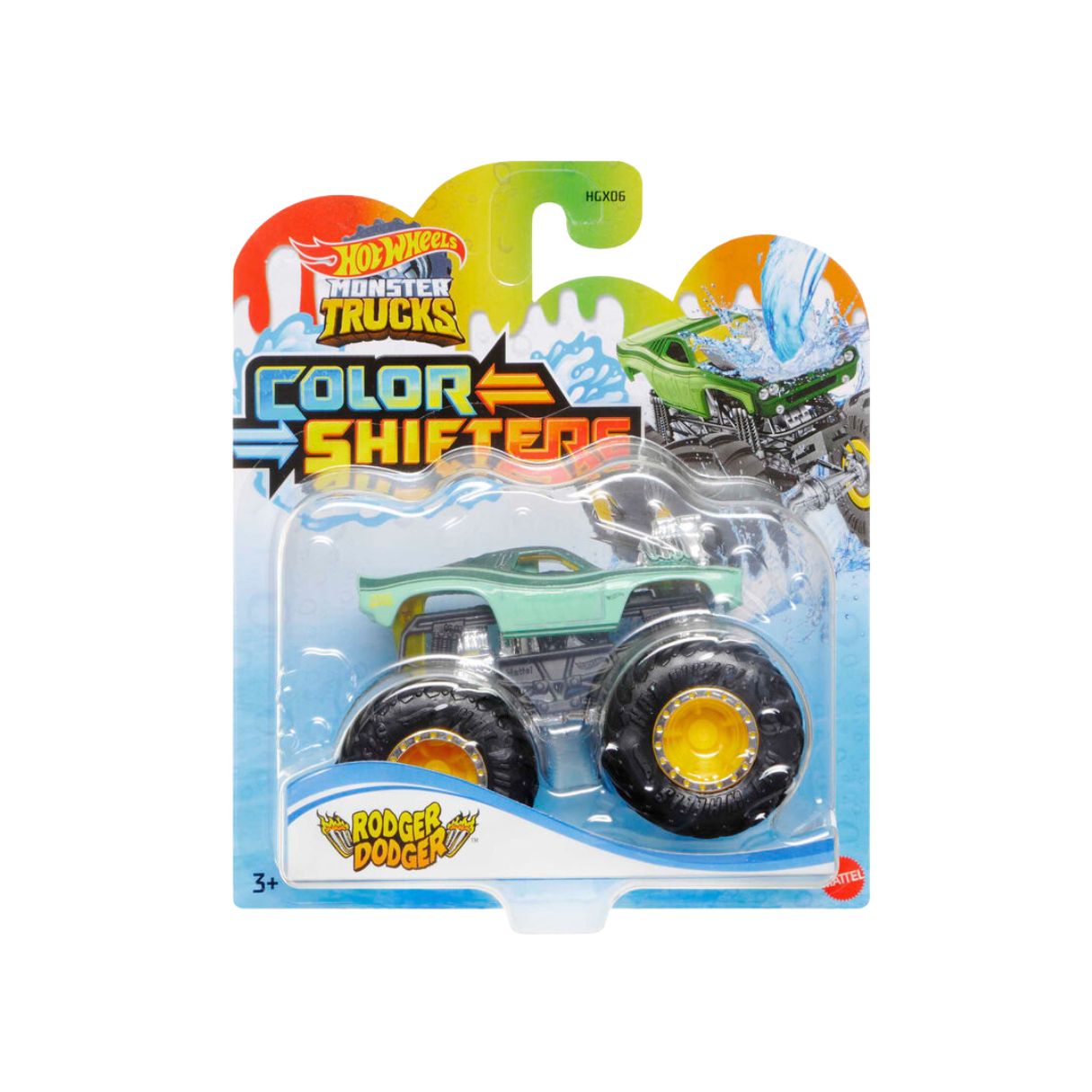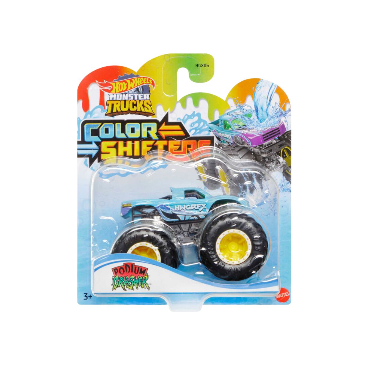 - Turn up the smashing, crashing fun with the Hot Wheels Color Shifters Monster Trucks. These 1:64 scale trucks transform their look with the magic of water. Dip them in ice water to reveal a new design, then use warm water to change them back. Featuring big tires and bold Monster Truck styling, these trucks bring double the excitement and endless fun for kids and collectors.