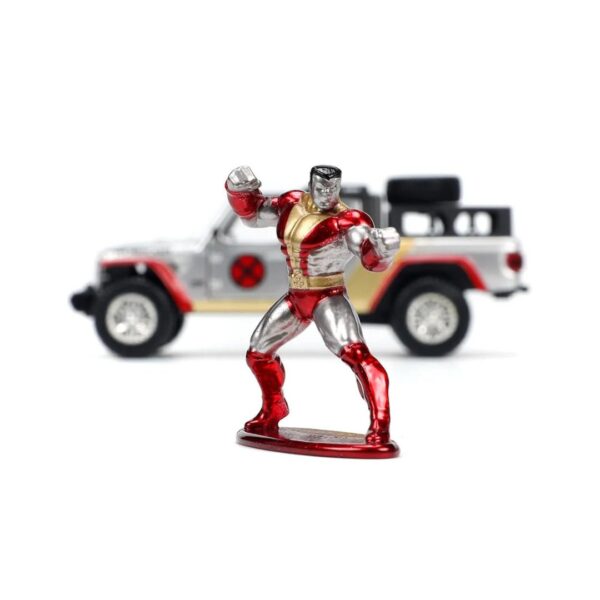 - The Jada MARVEL X-Men Jeep Gladiator in silver is a 1:32 scale die-cast model featuring free-wheeling, opening doors, and rubber tires. It includes a die-cast Colossus figure and comes in a display of six pieces, highlighting Jada Toys’ dedication to quality and appeal for collectors and fans.