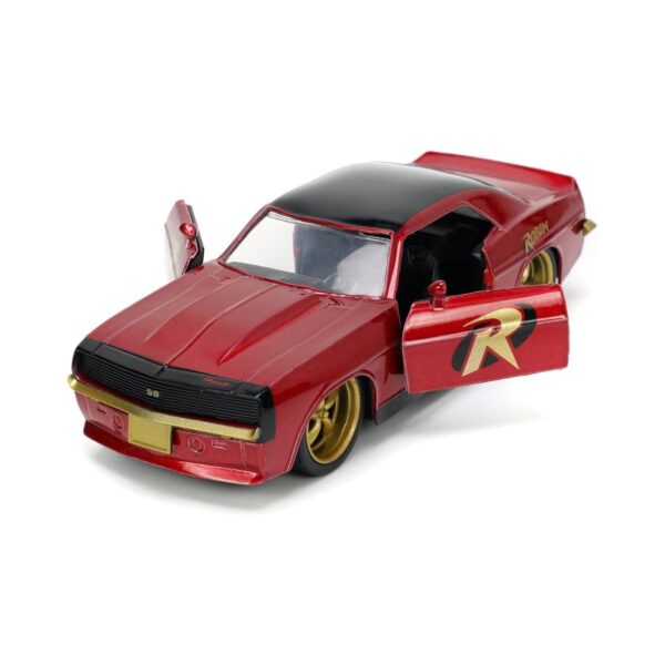 - The Jada 1:32 Robin 1969 Chevy Camaro is a detailed die-cast model featuring a unique Robin-themed design. It replicates the classic muscle car with high-quality construction, making it an exceptional collectible for car enthusiasts and comic book fans.
