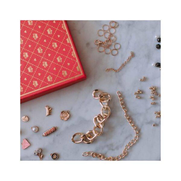 - Includes 12 Charms & Accessories – Features Juicy Couture charms, beads, metallic pieces, ribbons, and chains for endless creativity.
