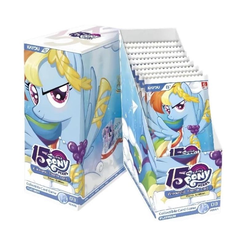 - Discover the magic of friendship with Kayou My Little Pony Friendship Eternal Cards – Moon Edition (SEA Series 3). This collectible card series features enchanting moon-themed designs, your favorite My Little Pony characters, and whimsical artwork that brings every card to life. Each pack is sold in a blind-box format, adding excitement with every pull and the chance to collect rare and special cards. Perfect for fans, collectors, and trading enthusiasts looking to expand their My Little Pony collection.