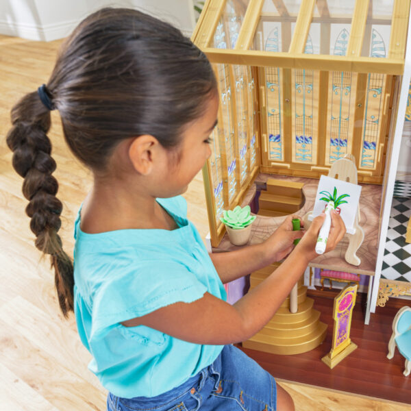 - Part wonder, part luxe, all imaginative fun—dreams will come alive in this architecturally alluring Enchanted Greenhouse Castle by KidKraft. Every entrance into a room is a breathtaking discovery. A courtyard on the ground floor is a lovely place to take in the views and relax. The greenhouse solarium on the second floor provides a creative space to be artistic—luckily there’s an easel with notepaper there! Dual balconies, winding staircases and a grand 12 rooms make exploring this house magical. With some added light from the lantern and sound from the piano, imagination comes to life in the KidKraft Enchanted Greenhouse Castle.
