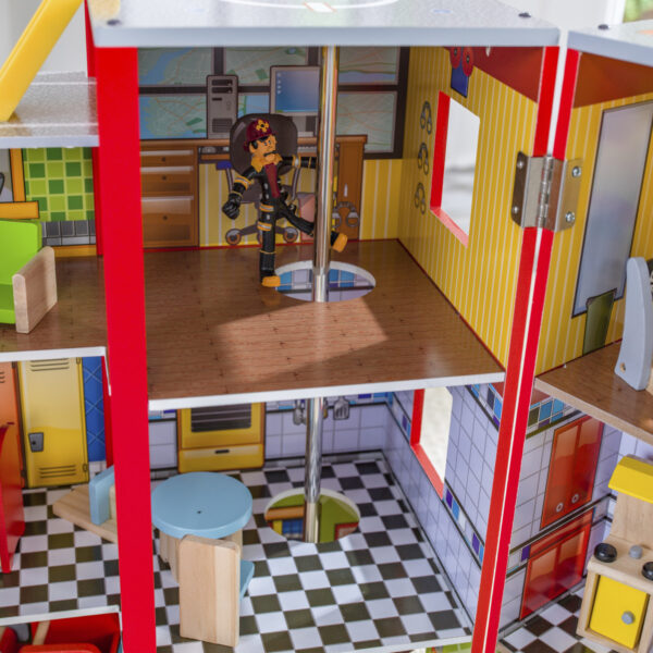 - Help is on the way with the KidKraft Everyday Heroes Wooden Playset. Three levels, 12 themed rooms, and a roof-to-floor fire pole are guaranteed to boost children’s imaginations as they explore what it means to be a real-life hero. The included 35-piece accessory kit features a police motorcycle, fire truck, helicopter, fire dog, and more. When playtime is done, the set folds closed on sturdy hinges to make cleanup easy.