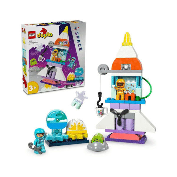 - Blast off into a world of adventure with the 3in1 Space Shuttle Adventure (10422) toy – the perfect play companion for toddlers aged 3 and up! This imaginative set launches little astronauts into an exciting galaxy exploration, where they can soar through space, encounter friendly aliens, and discover the wonders of the solar system.
