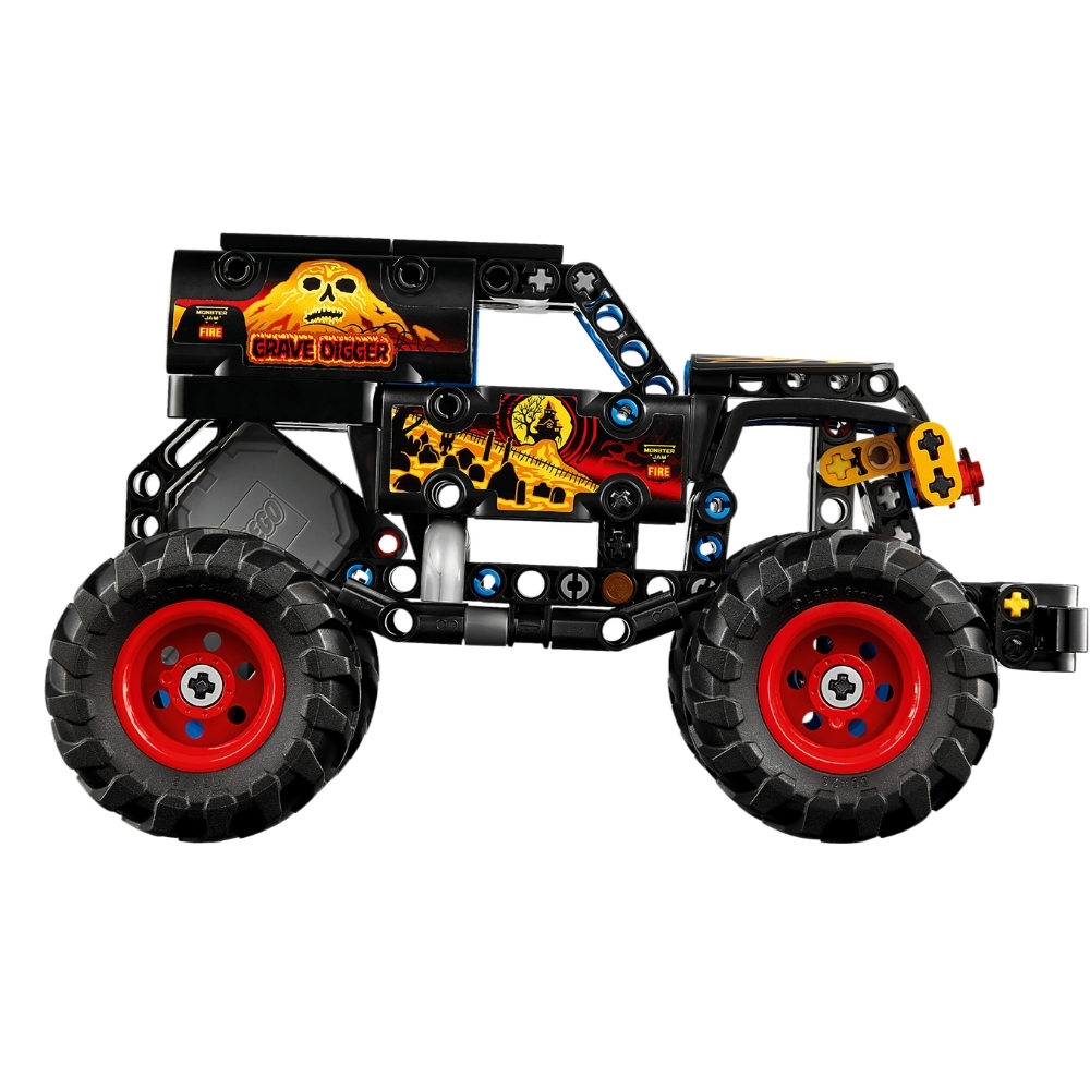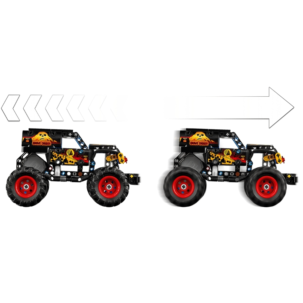 - Rev up the action with the LEGO Technic Monster Jam Grave Digger Fire and Ice Pull-Back Truck! Perfect for kids aged 7 and up, this pull-back monster truck lets young fans recreate the thrilling stunts and tricks seen in the Monster Jam arena. With its bold dual-themed design fire on one side, ice on the other this detailed model captures the excitement and spirit of the iconic Grave Digger truck. Encourage imaginative play as kids race, perform stunts, and build their own Monster Jam adventures. Lightweight, durable, and easy to use, this pull-back truck delivers endless hours of hands-on fun and excitement.