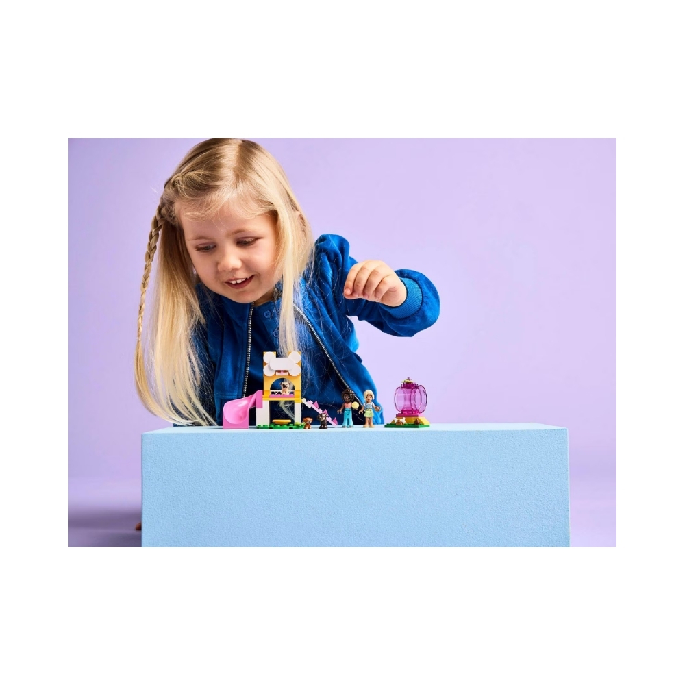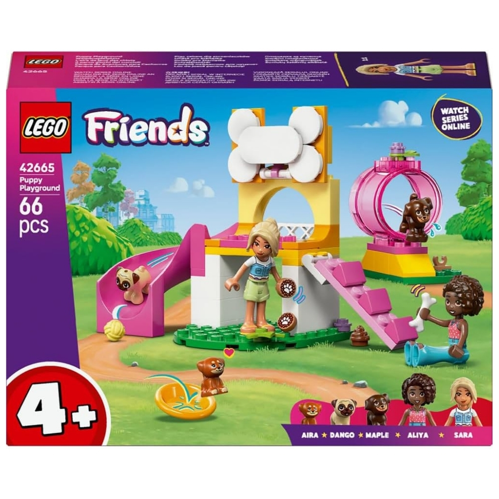 - Delight young animal lovers with the LEGO Friends Puppy Playground set, specially designed for kids aged 4 and up. This adorable playset features a colorful puppy playground with fun elements like a slide, ladder, and tube for interactive adventures. Children can create friendship stories with Aliya and Sara mini dolls while caring for three cute puppy figures Aira, Dango, and Maple. With playful accessories including a ball, dog biscuits, a bone, and even a silly dog poo element, this set encourages imaginative storytelling, social role-play, and hands-on building confidence for preschool builders.