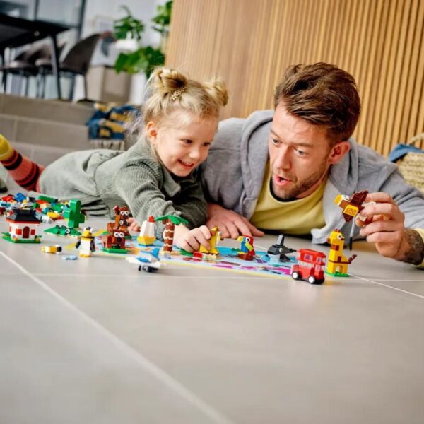 - The LEGO® Classic Around the World (11015) playset comes with 15 build ideas based on iconic animals and objects from around the world. Kids also get a colorful wall map to show the home continent of each animal and plant. And with such a wide variety of LEGO pieces, plus lots of extra bricks in the box, open-ended creativity is free to flow.