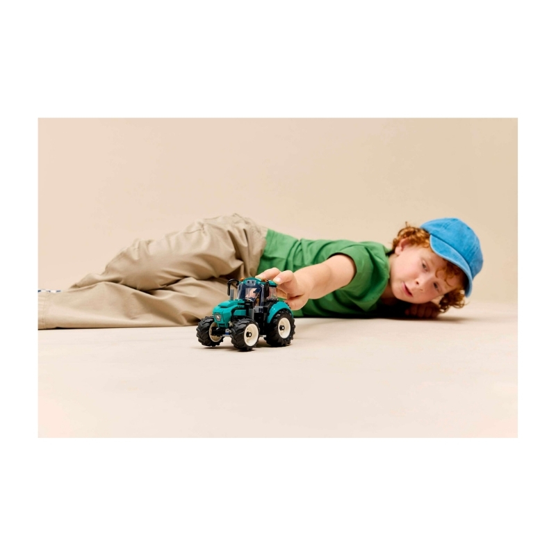 - Let kids roll into farm adventures with the Lego City Tractor, designed for boys and girls aged 6 years and up who love vehicle model kits and creative building sets. This fun and educational farm vehicle toy features a fresh teal color scheme and 4 large rubber tires, making it perfect for imaginative countryside play. The set includes a farmer minifigure with a hat and cup accessory, ready to take the wheel. With realistic features such as an opening bonnet to explore the engine and a removable roof for easy access to the cab, kids can enjoy hands-on building and role-play farming stories. Ideal for birthdays or everyday fun, this Lego tractor encourages creativity, problem-solving, and storytelling.