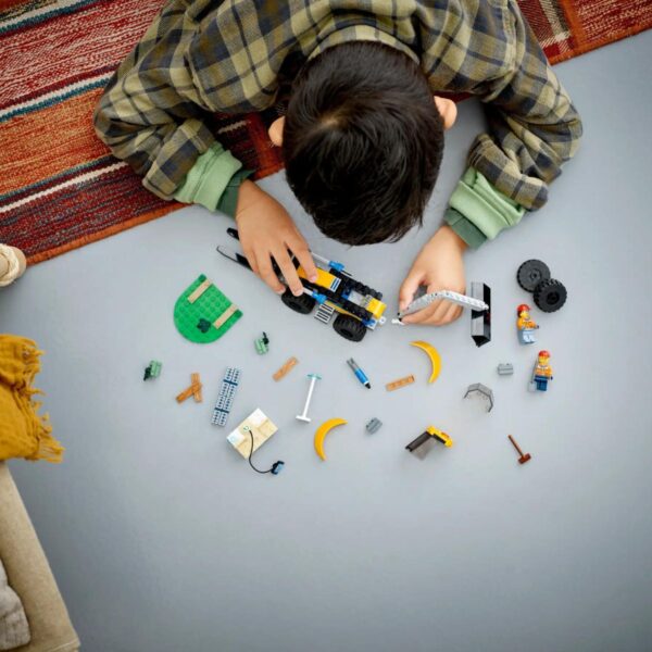 - Toy excavator machine – Fans of building toys will love this LEGO® City Construction Digger (60385), with interchangeable boom attachments
