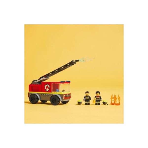 - Introduce young heroes to the world of firefighting adventures with the LEGO City Fire Ladder Truck! This action-packed playset features a classic fire truck with a raisable ladder and built-in extinguisher, perfect for imaginative rescue missions. The set includes two firefighter minifigures and fun accessories like LEGO flicker flames and a handheld extinguisher for realistic role play. Designed for kids aged 4+, this easy-to-build set inspires storytelling and creative play.