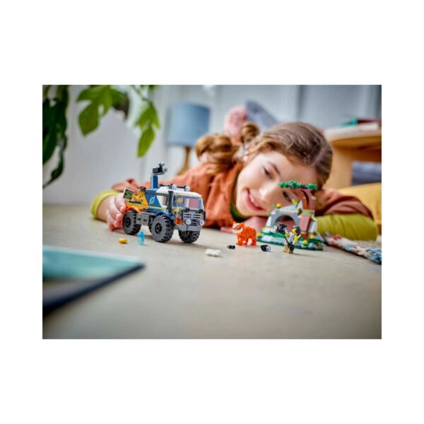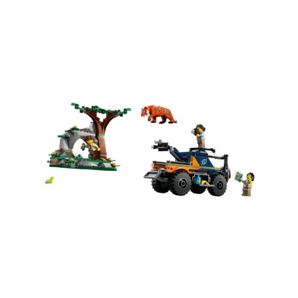 - The LEGO City Jungle Explorer Off-Road Truck set features a rugged truck, jungle cave, toy drone, three explorer minifigures, and a tiger figure for imaginative play. It includes a printed guide and 3D instructions via the LEGO Builder app, making it perfect for adventurous kids who love creative storytelling.