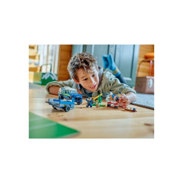 - The LEGO City Mobile Police Dog Training set, for kids aged 5 and up, includes a K9 SUV, trailer, and dog training equipment like a seesaw, jump bar, and stepping paws. It offers various imaginative training scenarios for police dogs.
