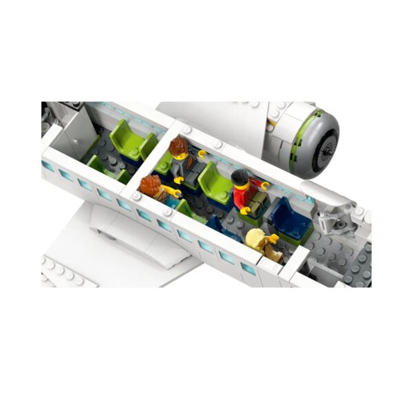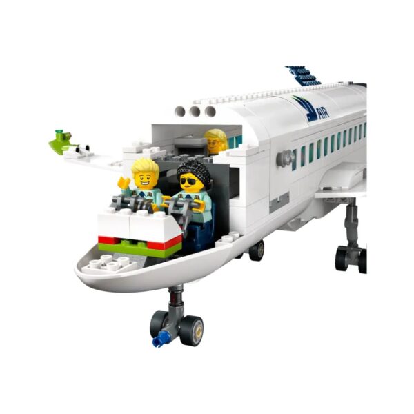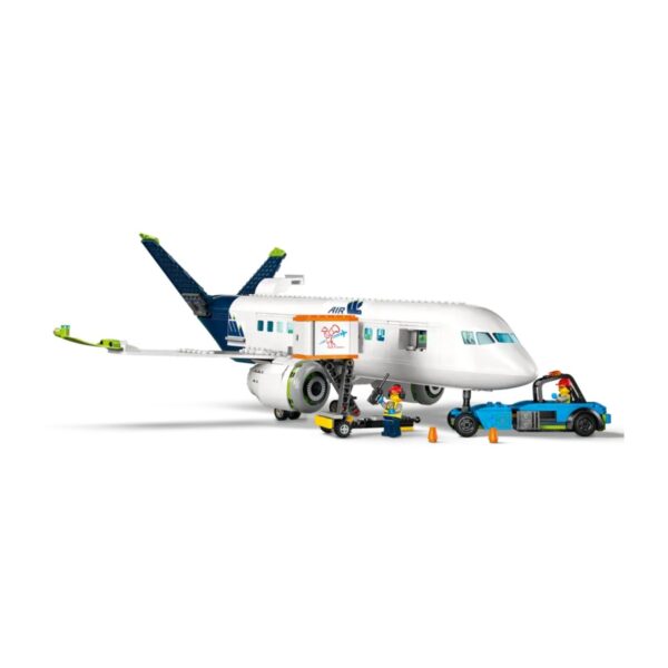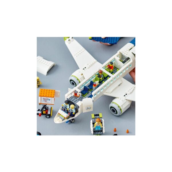 - The LEGO City Passenger Airplane set, for kids 7 and up, features a detailed aircraft with a cockpit, seating, and interior amenities. It includes airport vehicles like an airstair, catering truck, and baggage truck, plus 9 minifigures. The set offers an interactive building experience with the LEGO Builder app for step-by-step instructions and model visualization.