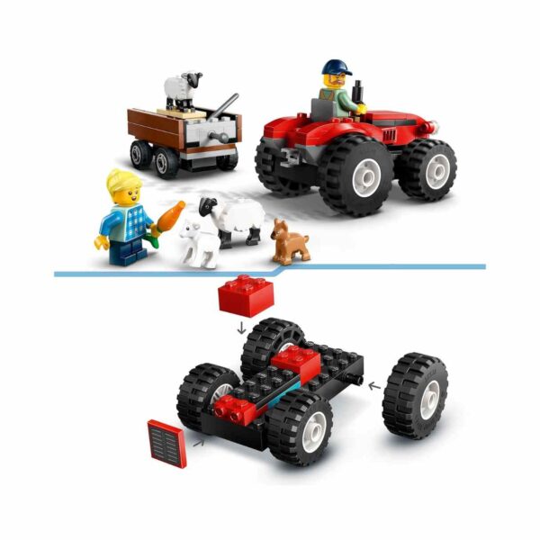 - Let young farmers explore the countryside with the LEGO City Red Farm Tractor with Trailer & Sheep playset! Designed for kids aged 4 and up, this set encourages imaginative storytelling with a toy tractor, trailer, minifigures, and adorable farm animals.