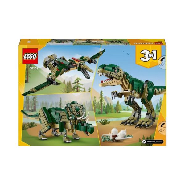 - The LEGO® Creator 3in1 T. rex set lets kids aged 9+ build 3 different posable dinosaurs: a T. rex, a triceratops, and a pterodactyl. It includes a nest with 2 eggs and offers endless play and display possibilities.