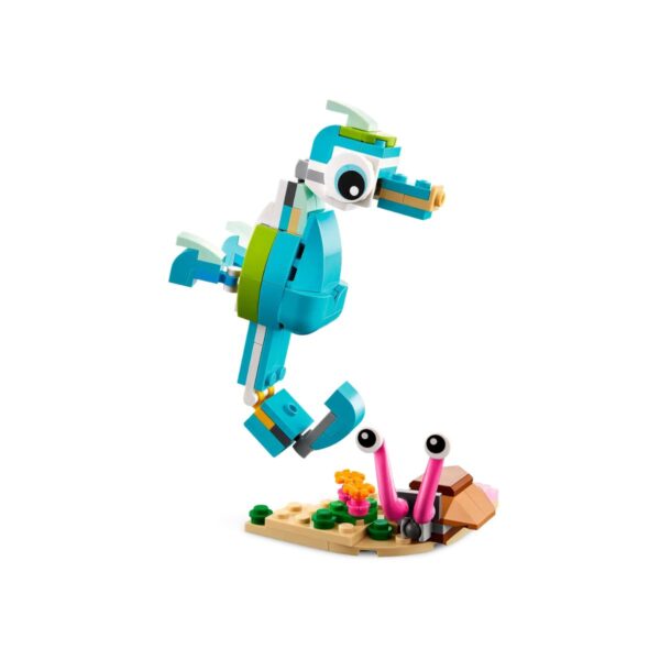 - The underwater fun never stops with 3 sea animal toys for kids to build in this LEGO Creator 3in1 set. They can create a posable Dolphin and Turtle, rebuild it into a posable seahorse with a sea snail, transform it into a pretty fish swimming with a crab, or dream up an entirely new animal.