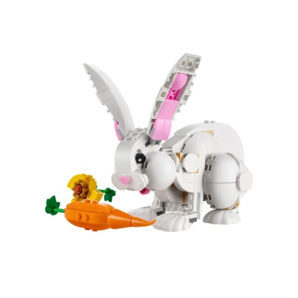 - The LEGO Creator 3in1 White Rabbit set offers endless creative fun with three toy models: a White Rabbit, cockatoo parrot, and white seal. Kids can explore forests, soar through trees, or swim in the sea with these versatile toys, sparking imaginative adventures.