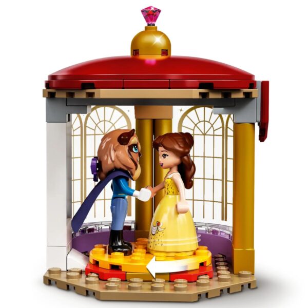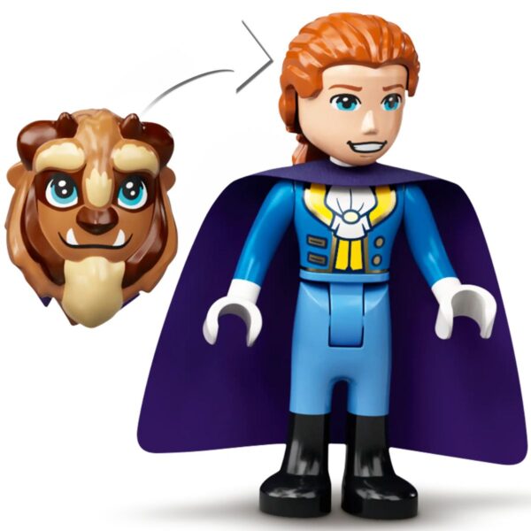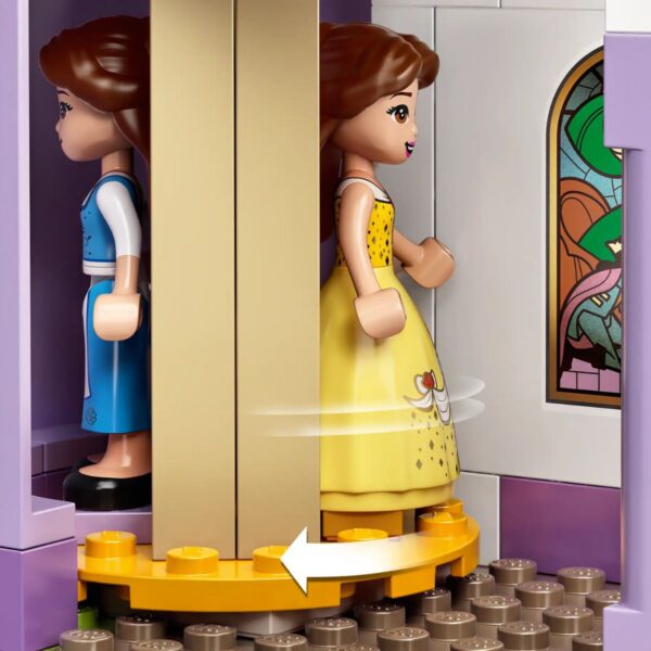 - Create a 2-story castle with a spinning dance floor, rotating closet, 3 mini-doll figures (including 2 versions of Belle and a Beast head for the Prince), Philippe the horse, and 6 other LEGO® figures.
