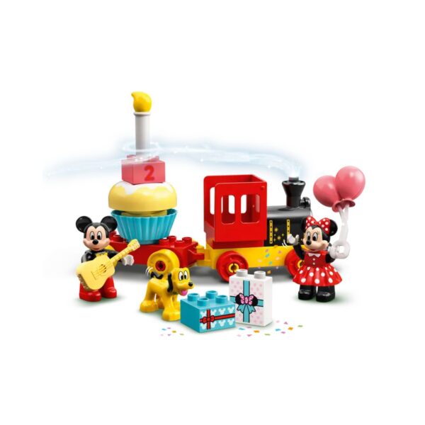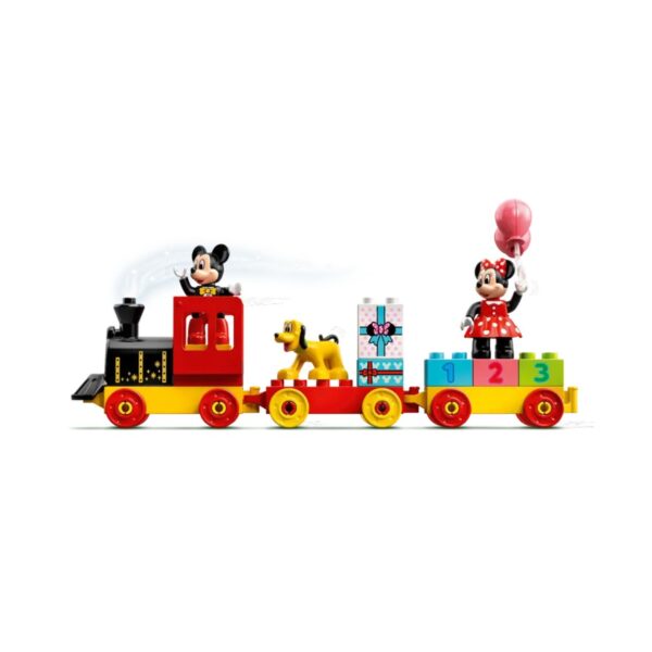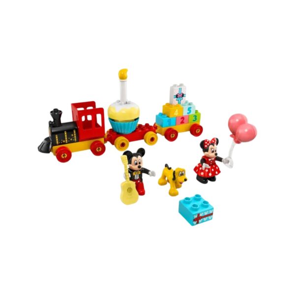- The LEGO Duplo Disney Mickey & Minnie Birthday Train is a colorful and interactive building set for preschoolers featuring Mickey Mouse, Minnie Mouse, and Pluto. It combines creative construction with playful activities, helping toddlers develop fine motor skills, creativity, and social interaction through engaging play.
