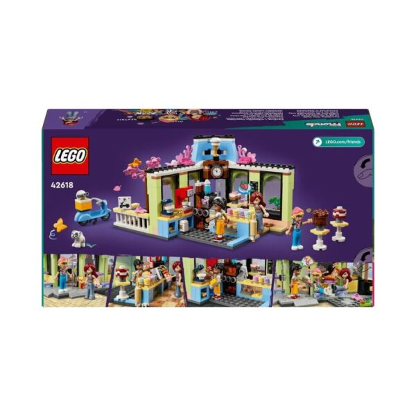 - The LEGO® Friends Heartlake City Café set for kids aged 6+ includes a café, 3 mini-dolls, a dog figure, and various accessories like a scooter and baking tools. It encourages imaginative play as kids bake, serve treats, and make deliveries. The LEGO Builder app enhances the building experience with interactive features.