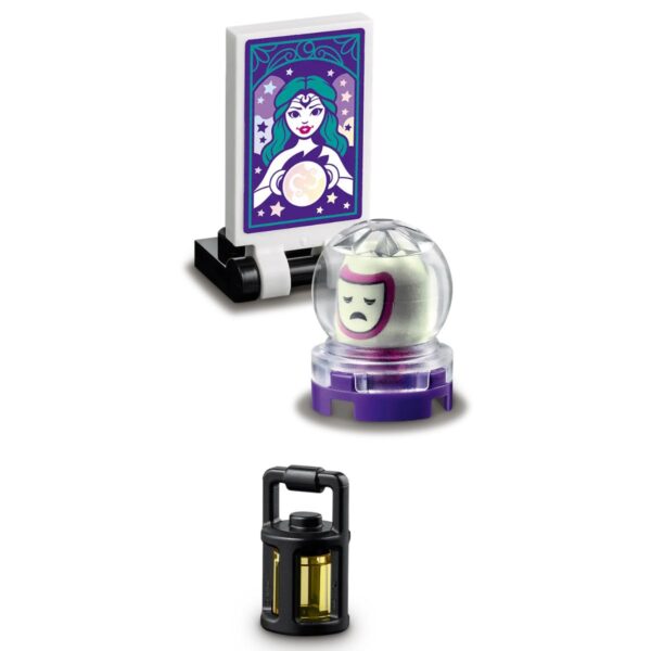 The horse-drawn caravan is brimming with traditional features, such as cute latticework shutters and an old-fashioned lantern. The roof is side-hinged to allow kids to explore the living quarters. Inside they’ll find a bed, a kitchen with a stove and a table they can eat around. They can then care for the horse or play with the owl. In the tent is a crystal ball. Controlled by a twisting function, it spins to reveal Mia’s future. Kids can choose whether it lands on a sad face or a happy face or simply let fate decide… - The magic of friendship
