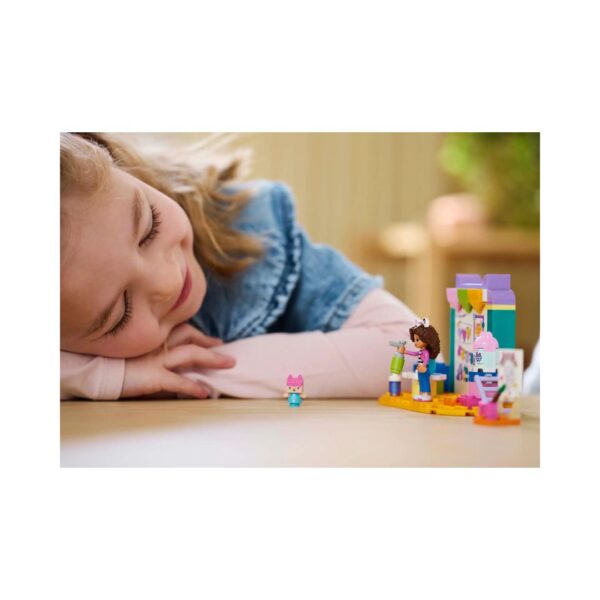 - The LEGO® 4+ Gabby’s Dollhouse Crafting with Baby Box playset lets kids aged 4+ engage in creative play with arts-and-crafts activities. It includes a Gabby mini-doll, Baby Box figure, craft supplies, and a buildable dollhouse model. The set features a Starter Brick for easy building and comes with intuitive instructions. Ideal for fans of Gabby’s Dollhouse, it encourages imaginative play and creativity.